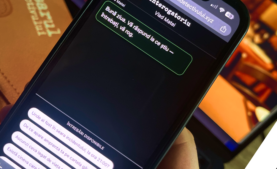 După ce analizezi interogatoriile poliției și verifici toate probele, poți continua investigația discutând direct cu suspecții în timp real pe telefonul tău, unde poți direcționa interogatoriul și îi poți împinge să-și contrazică declarațiile. Fii atent: unii încearcă să ascundă adevărul, iar răspunsurile lor pot fi alunecoase.