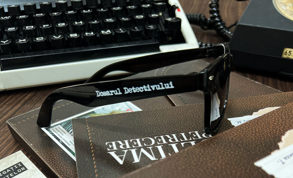 - 1x Ochelari de Soare Clasici Dosarul Detectivului – rame negre lucioase, lentile închise, protecție UV400
